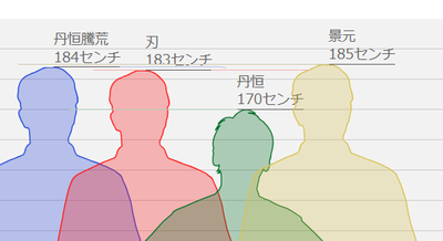 少なめに見て14~15センチは差がありそう。でも騰荒が大人バージョンとしたら、丹楓も同じくらいの可能性はある。